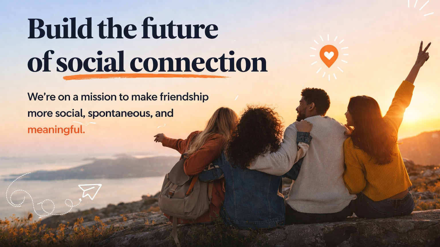 Our mission is simple: to help people meet like-minded others, create real friendships, and experience life in a more social, spontaneous, and meaningful way.